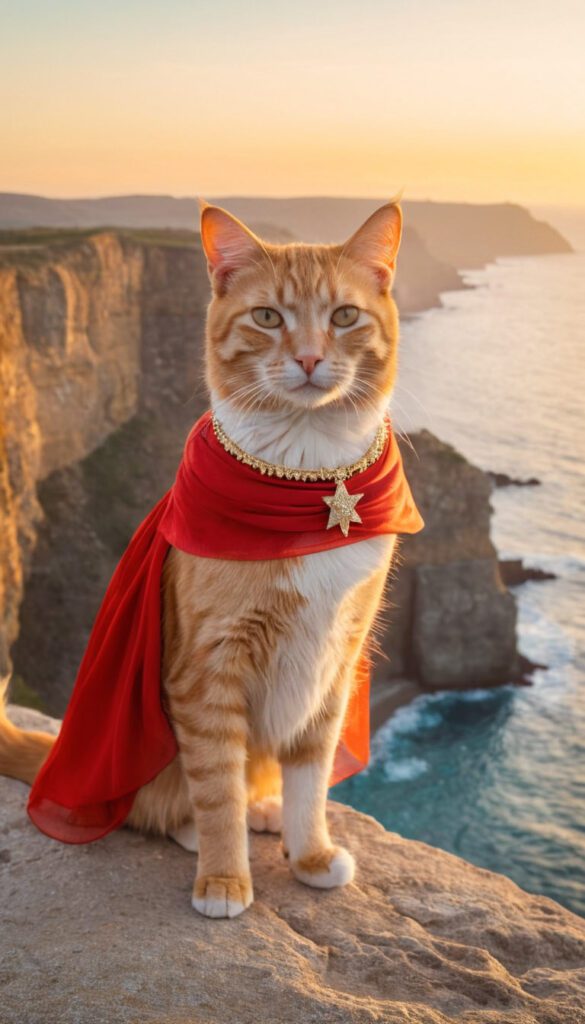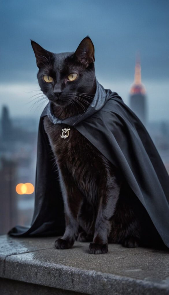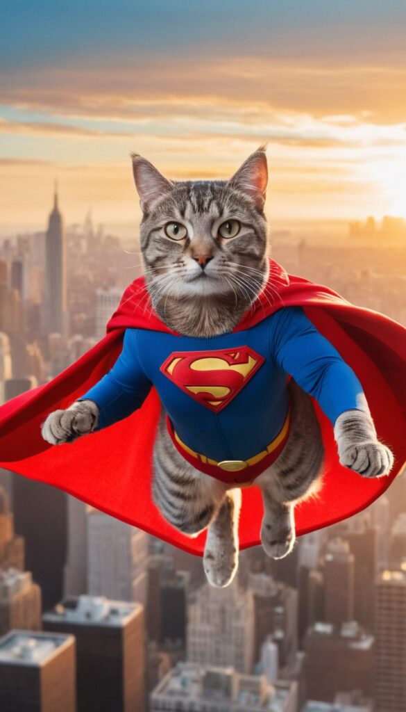 With his iconic blue suit, red cape, and the strength of a thousand cats, Super-Purr is the ultimate feline hero. Whether he’s soaring through the skies or saving kittens from trees, this purr-fect protector is always there when you need him.