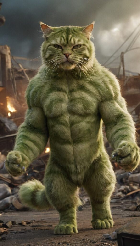Big, green, and incredibly strong, Hulk Cat is a powerhouse of raw feline energy. Though he can be a bit grumpy when provoked, this gentle giant has a soft side that’s as big as his muscles. Just don’t make him angry!